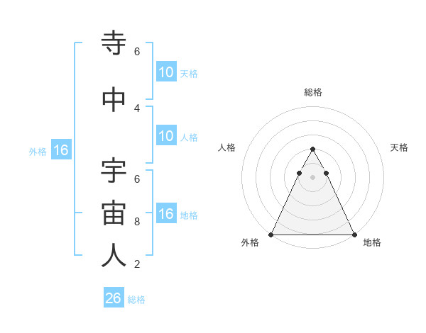 寺中 宇宙人さんの総格は26画の2点!