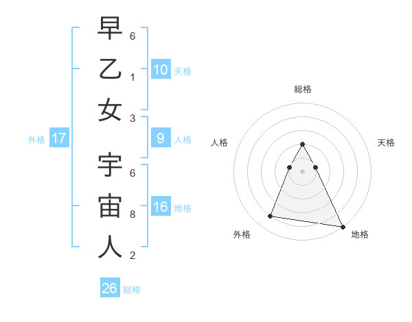 早乙女 宇宙人さんを姓名の画数から五運を鑑定