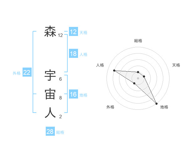 森 宇宙人さんを姓名の画数から五運を鑑定