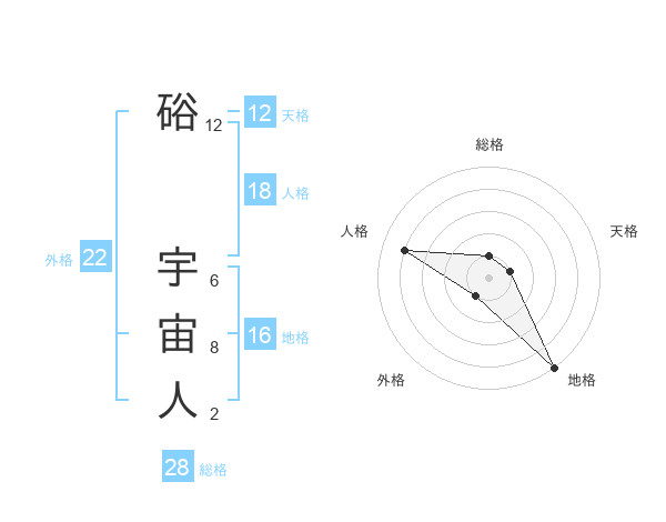 硲 宇宙人さんの総格は28画の1点!