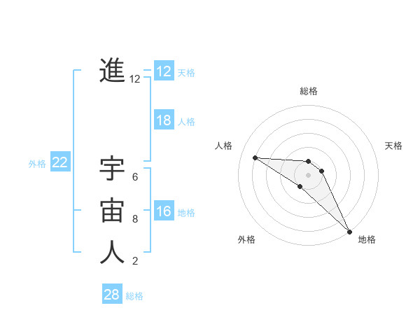 進 宇宙人さんの総格は28画の1点!