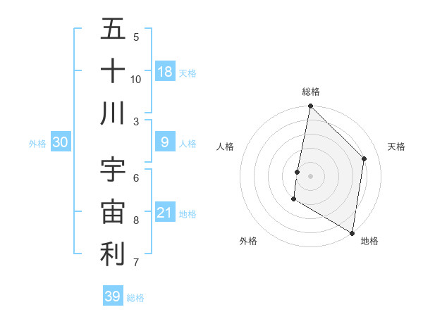 五十川 宇宙利さんを姓名の画数から五運を鑑定