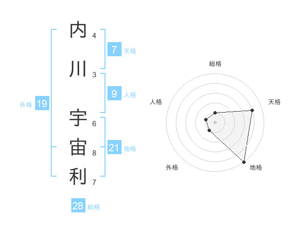 内川 宇宙利さんを姓名の画数から五運を鑑定