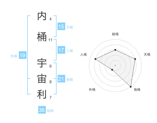 内桶 宇宙利さんを姓名の画数から五運を鑑定