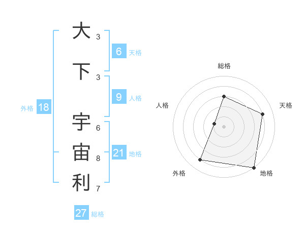 大下 宇宙利さんを姓名の画数から五運を鑑定