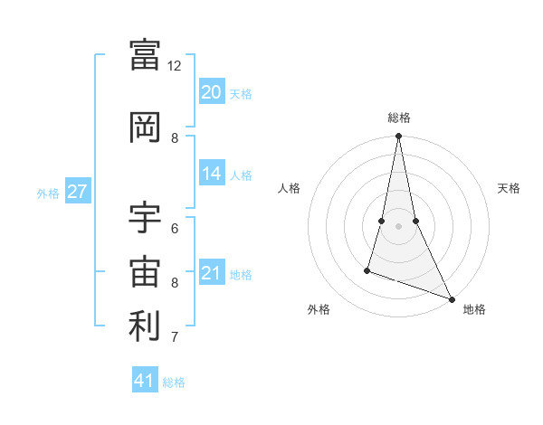 富岡 宇宙利さんを姓名の画数から五運を鑑定