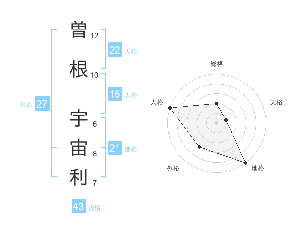 曽根 宇宙利さんを姓名の画数から五運を鑑定