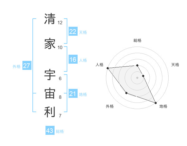 清家 宇宙利さんを姓名の画数から五運を鑑定