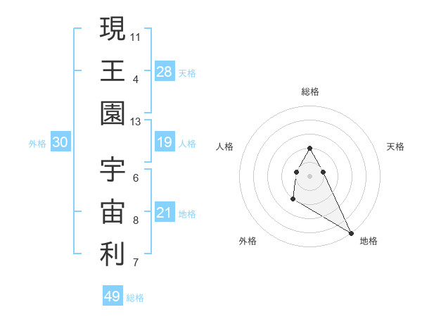 現王園 宇宙利さんを姓名の画数から五運を鑑定