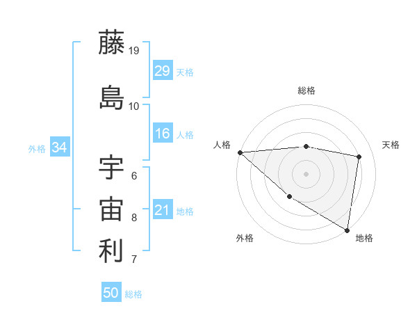 藤島 宇宙利さんを姓名の画数から五運を鑑定