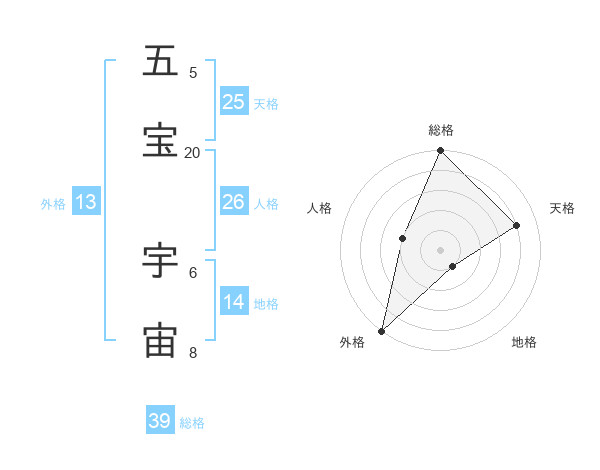 五宝 宇宙さんの総格は39画の5点!