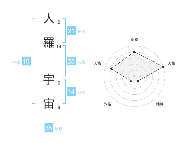 人羅 宇宙さんの総格は35画の4点!