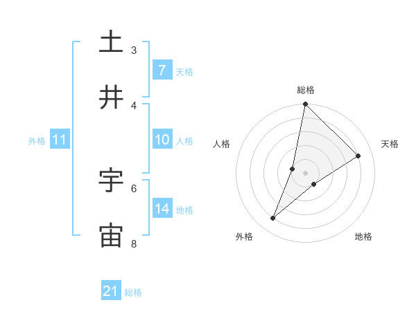 土井 宇宙さんを姓名の画数から五運を鑑定