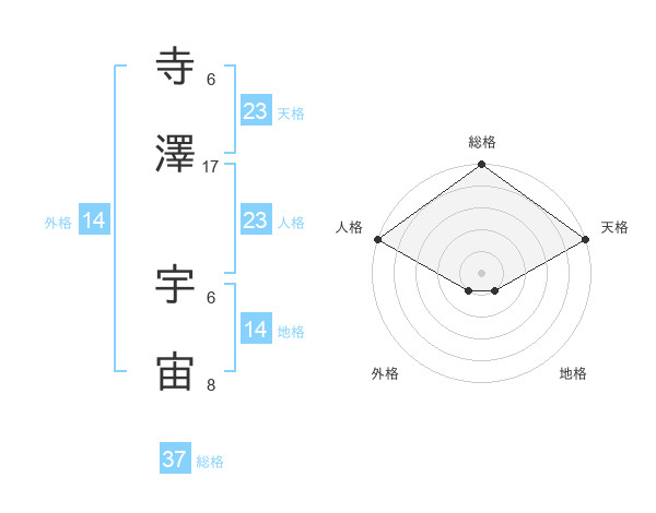 寺澤 宇宙さんの総格は37画の5点!