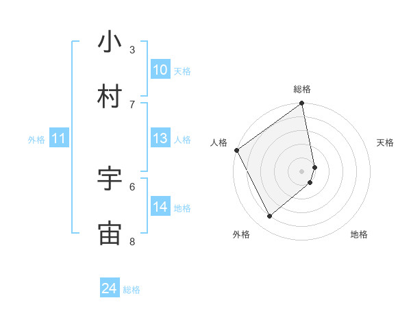 小村 宇宙さんの外格は11画の4点!