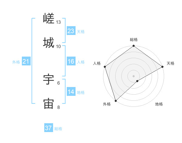 嵯城 宇宙さんを姓名の画数から五運を鑑定