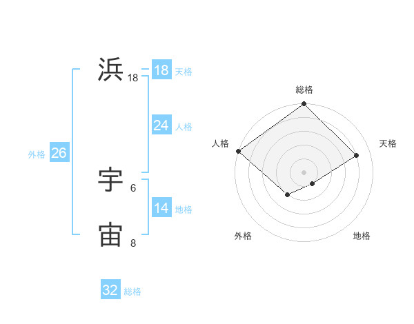 浜 宇宙さんの天格は18画の4点!