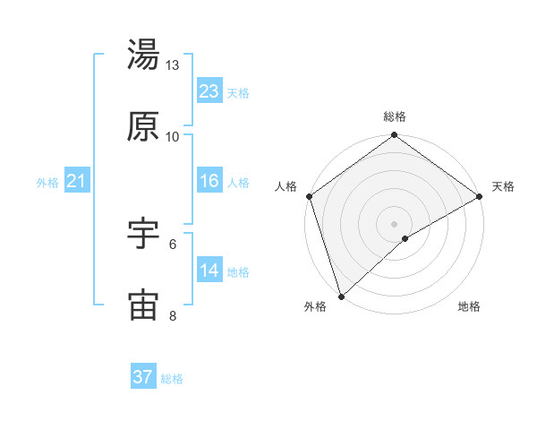 湯原 宇宙さんを姓名の画数から五運を鑑定