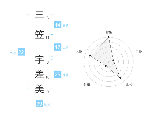 三笠 宇差美さんを姓名の画数から五運を鑑定