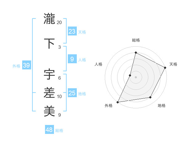 瀧下 宇差美さんを姓名の画数から五運を鑑定