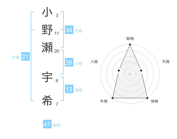 小野瀬 宇希さんを姓名の画数から五運を鑑定