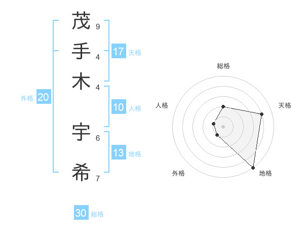 茂手木 宇希さんの総格は30画の2点!