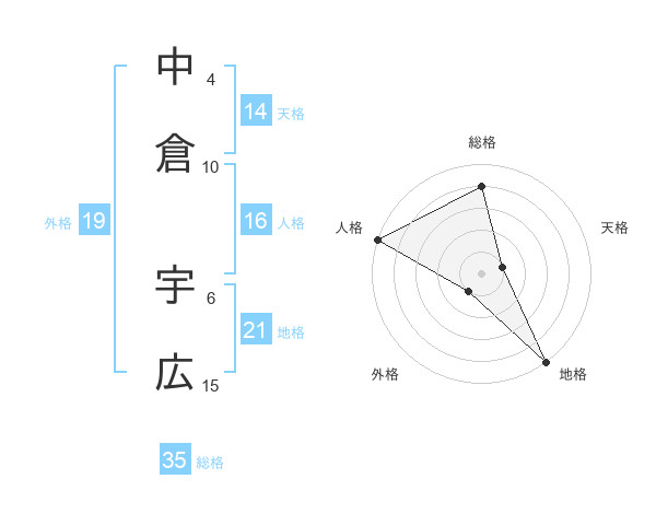 中倉 宇広さんの総格は35画の4点!