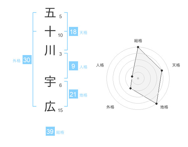 五十川 宇広さんを姓名の画数から五運を鑑定