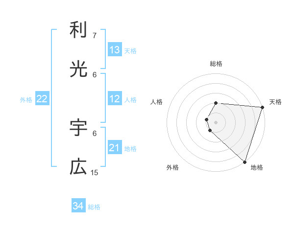 利光 宇広さんの総格は34画の2点!