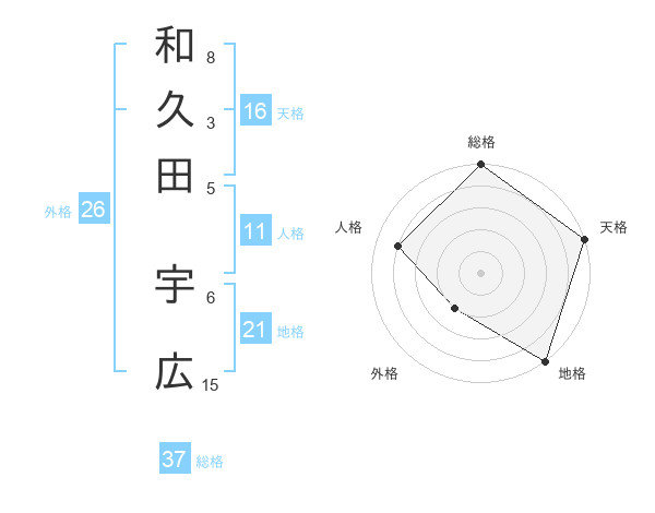和久田 宇広さんの総格は37画の5点!
