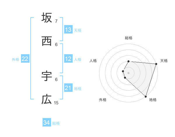 坂西 宇広さんを姓名の画数から五運を鑑定