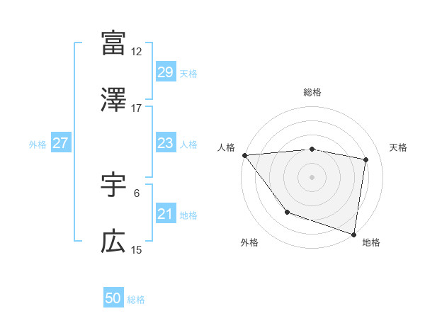 富澤 宇広さんを姓名の画数から五運を鑑定