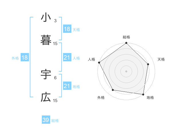 小暮 宇広さんの総格は39画の5点!