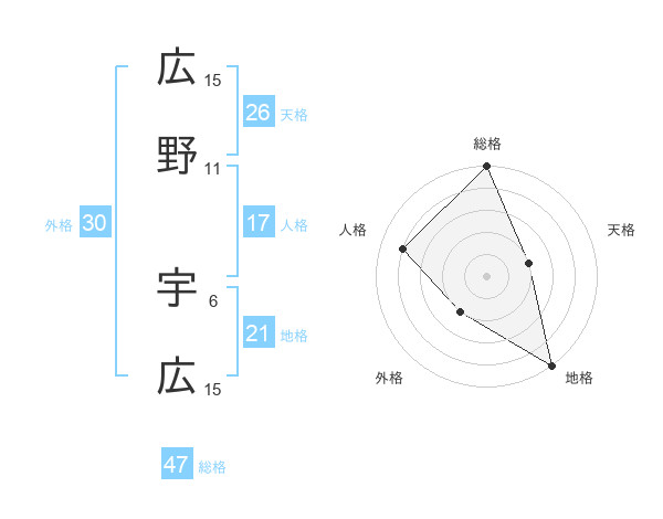 広野 宇広さんの総格は47画の5点!