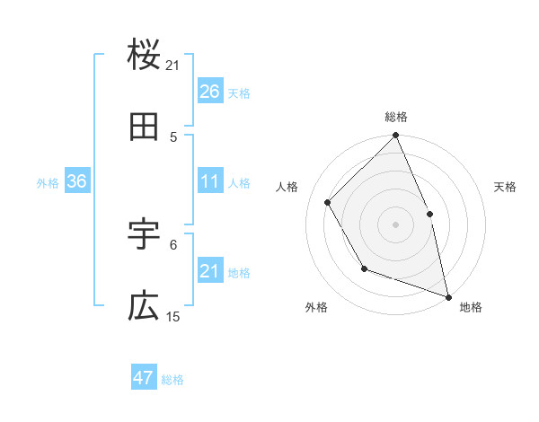 桜田 宇広さんを姓名の画数から五運を鑑定