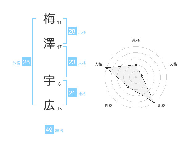 梅澤 宇広さんを姓名の画数から五運を鑑定