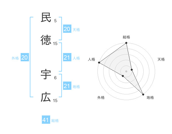 民徳 宇広さんを姓名の画数から五運を鑑定