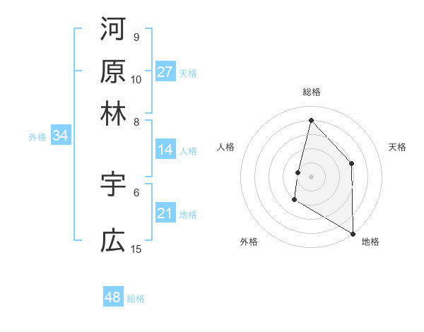 河原林 宇広さんの総格は48画の4点!