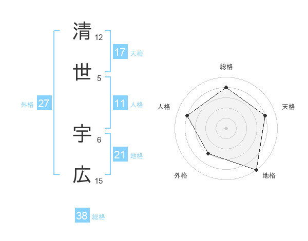 清世 宇広さんの総格は38画の4点!