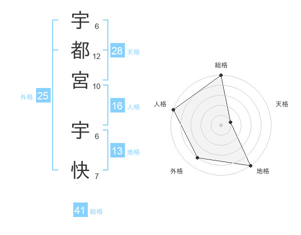 宇都宮 宇快さんを姓名の画数から五運を鑑定