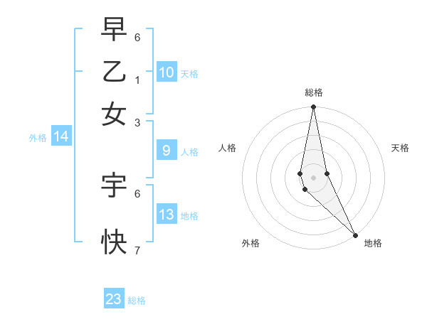 早乙女 宇快さんを姓名の画数から五運を鑑定