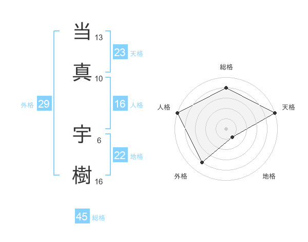 当真 宇樹さんを姓名の画数から五運を鑑定