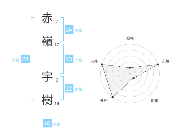 赤嶺 宇樹さんを姓名の画数から五運を鑑定