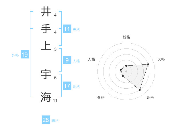 井手上 宇海さんを姓名の画数から五運を鑑定