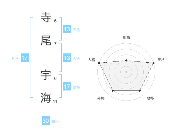 寺尾 宇海さんの天格は13画の5点!