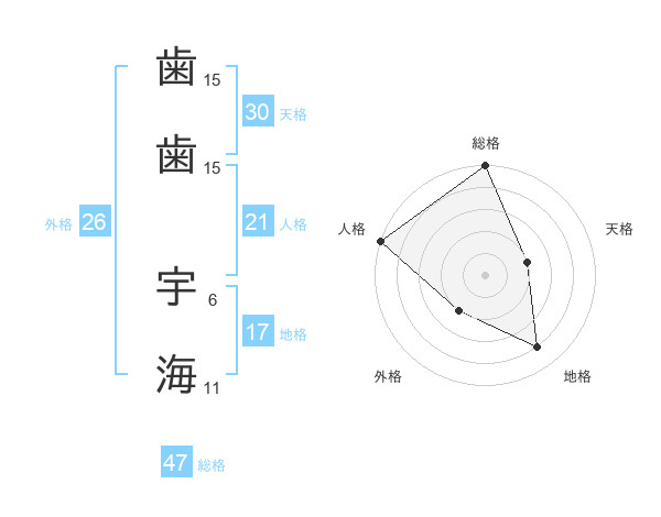 歯歯 宇海さんを姓名の画数から五運を鑑定