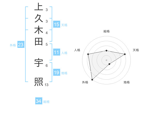 上久木田 宇照さんを姓名の画数から五運を鑑定