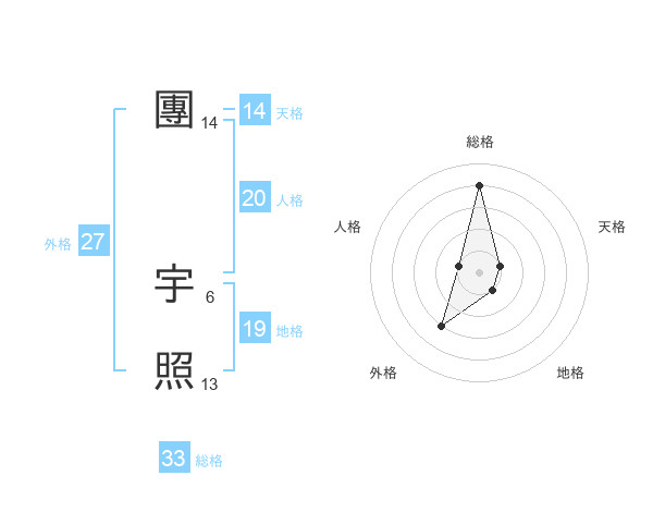 團 宇照さんの総格は33画の4点!