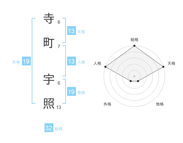 寺町 宇照さんの天格は13画の5点!