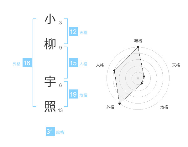 小柳 宇照さんの天格は12画の1点!